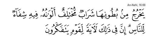 "De leur ventre , sort une liqueur, aux couleurs variées, dans laquelle il y a une guérison pour les gens." (an-Nahl, 16:69)