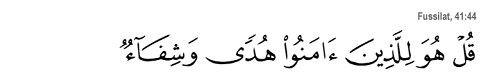 "Dis: Pour ceux qui croient, il est une guidée et une guérison.". (al-Fussilat, 41:44)
